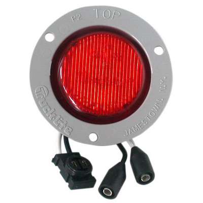 Truck-Lite 2" Clearance Marker Lamp, 30 Series, Low Profile, LED, Red Round, 2 Diode, P3, Gray Polycarbonate Flush Mount, Fit 'N Forget M/C, Female PL-10, 12V, Kit, 30071R