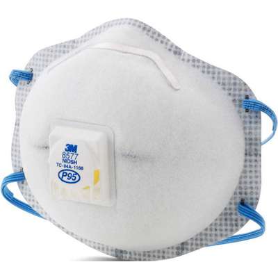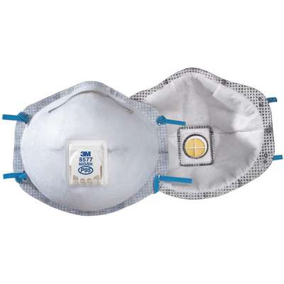These general purpose disposable P95 respirators are oil-proof, have an exhalation valve, and filter nuisance odors. They are used where there is high risk of exposure to oil splash, odors, and airborne particles, including woodworking, demolition, and food manufacturing. P95 respirators are oil proof and filter at least 95% of airborne particles. The exhalation valve opens automatically when the wearer breaths out to allow breath to exit the mask quickly, keeping the wearer cooler and more comfortable. The valve automatically closes when the wearer inhales to ensure all air breathed in is filtered. These respirators reduce or eliminate nuisance odors, such as organic vapors and acid gas, that are found in demotion work and food manufacturing.