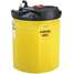 Proprietary double-wall design with black primary tank and yellow secondary containment tank that provides 120% of inner tank's capacity. 100% recyclable polyethylene, maintenance-free construction. Features a tank level indicator, debris strainer basket, and 2" top-draw quick-connect drain coupling. Vented, weather-resistant design enables indoor or outdoor use.