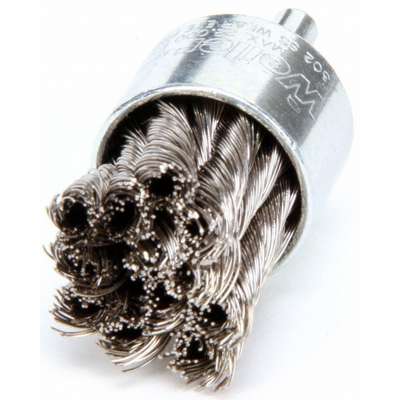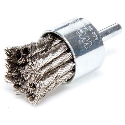 Weiler 1-1/8" Twisted Wire End Brush, 1/4" Shank, 0.014" Wire Dia., 1/4" Bristle Trim Length