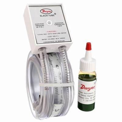 Flexible Tube Manometer, Operating Range (In WC) 18-0-18, Slack Tube Length36 in, Max. Working Temp. (Deg. F) 130, Hose Inside Dia.3/16 in, Rated Total Pressure 50 psi, Max. Vacuum (In. Hg) 20 in, Magnetic Clip Mounting, Includes One Bottle of Fluorescent Green Color Concentrate with Wetting Agent and Instructions