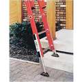 Easy to transport and maneuver, this durable ladder is made with nonconductive fiberglass rails. The D-rungs are slip resistant, and the durable rail shields and shoe brackets help to protect the rails from damage. The dual-action feet pivot for use on hard or penetrable surfaces. Additional features include mar-resistant molded end caps and prepierced holes for easy field installation of accessories. Molded rung braces on the bottom step provide increased durability.