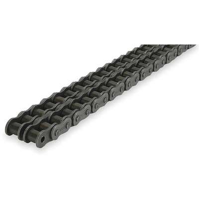 Double-Strand Roller Chain is comprised of 1 single strand roller chains set parallel to each other. The chains help to transfer motion from one set of sprockets to another. Hardened carbon steel construction helps provide durability, and factory preloaded, lube-grooved bushings help to minimize wear.