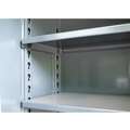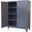 The Strong Hold® floor model storage cabinet is a versatile, heavy-duty industrial cabinet. Provides storage for valuable tools and machine parts. Cabinet includes 14-ga. shelves adjustable in 2" increments with 1200-lb. capacity each. All-welded, 12-ga. steel wraparound construction with 6"H legs. 3-point locking device is lockable with a standard padlock (sold separately).