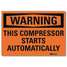 Warning Sign, Sign Subject Matter Facility, Height 7 in, Width 10 in, Sign Material Vinyl, Sign Mounting Style Adhesive Surface, Header Warning, Legend This Compressor Starts Automatically, Printed Language English, Sign Shape Rectangle