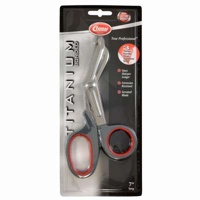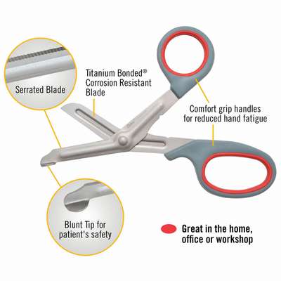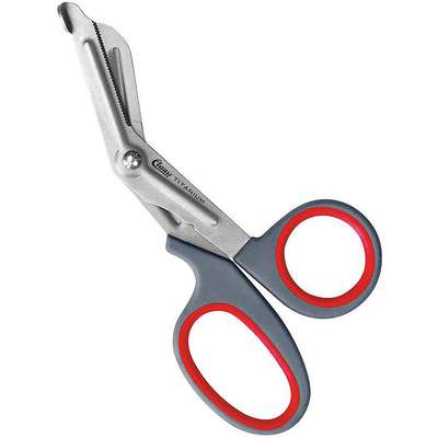 Primary Application Fabric and Thread, Fabric Shears, Ambidextrous, Handle Style Bent, Overall Length 7 in, Length of Cut 1 5/8 in, Blade Material Titanium Bonded® Steel, Tip Shape Blunt, Cutting Edge Serrated, Adjustable No, Handle Design Ring and Enlarged Bow, Handle Material Comfort Grip, Handle Color Gray/Red