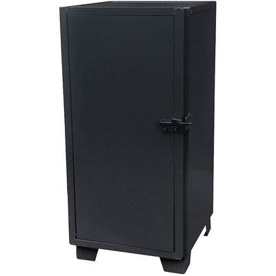 Closed storage cabinet holds and secures your valuables with all welded construction. Its 3 durable shelves are 12 ga. steel. Cabinet capacity is 2000 lbs., evenly distributed. Powder coated black finish. Padlock not included.