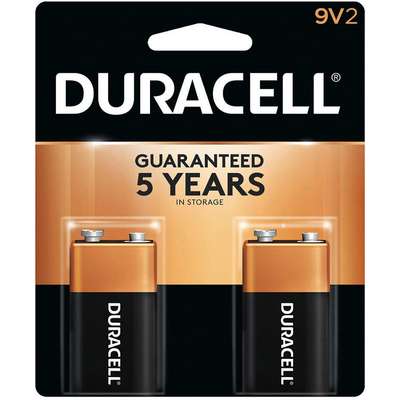 Duracell CopperTop 9V Battery, Alkaline, Premium, 9VDC, PK 2