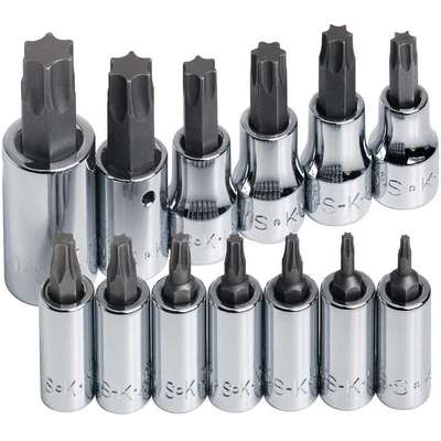 Sk Professional Tools S2 Steel Socket Bit Set with 1/4", 3/8" Drive Size and Chrome Finish; Number of Pieces: 13