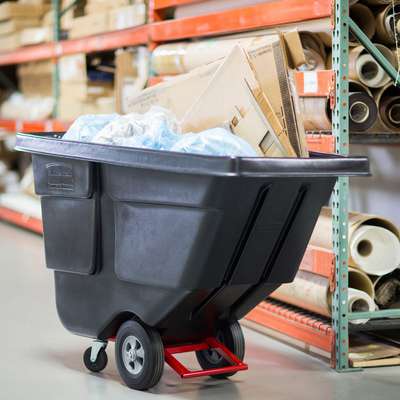 The Rubbermaid Commercial tilt truck offers industrial strength construction that transports heavy loads with ease. The constant force design allows controlled dumping by just 1 person. This forkliftable dump truck features heavy-duty, welded forklift pockets. Easy to handle and maneuver through doorways and onto elevators. The smooth surface is easy to clean and resists pitting and corroding.