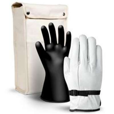 (1) Pair Rubber Electrical-Insulating Gloves, (1) Pair Leather Protectors, (1) Glove Bag