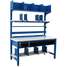 (1) 12 in Depth Steel Dividers (Pack of 4), (1) 30 in x 60 in Standard Laminate Work Table, (1) Back-Mounted 8-Outlet Power Strip, (1) Bin Rail, (1) Lower Bin Shelf, (1) Roll Holder, (1) Standard Laminate Upright Shelf, (1) Surface-Mounted Uprights (Pair)