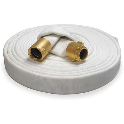 Pin rack and reel fire hoses lay flat when not in use and can be folded and stored on a pin rack or reel to keep them out of the way when they're not needed. These hoses are commonly installed in buildings to provide the buildings' occupants with fire hoses for initial fire response in an emergency. The hoses' simple design makes them ideal for users who may not be familiar with using fire hoses. They are designed to be used once and then discarded. The hoses have fittings on both ends for connecting to equipment and nozzles.