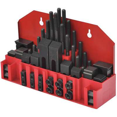 Clamping Kit, Machinist, Number of Pieces 52, Slot Size 5/16 in, For Use With Drilling Machines, Milling Machines, Lathes, Includes (6) Step Blocks, Material - Machining Steel, Application For Fixing Each Kind of Working Piece on Machining Table, Features All the Blocks, Bolts, Nuts and Hold-Downs are Case Hardened. Racks Can Be Bolted to the Wall or Side of Machine for Easy Access, Finish - Machining Black Oxide