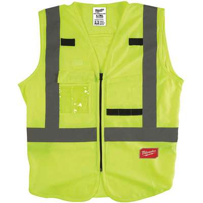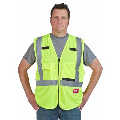 Milwaukee Yellow/Green, Silver, Safety Vest, Type R, Class 2, Zipper, L/XL