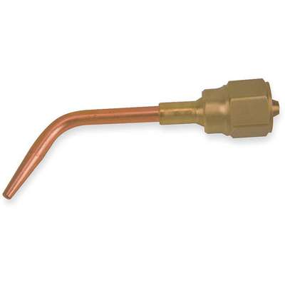 This welding nozzle is designed for use with acetylene gas and general-purpose welding and preheating. It features a 1-pc. copper elbow tip with a long cone flame.
