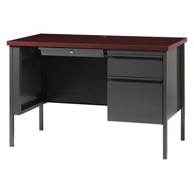 Office Desk,HL10000 Series,Overall Width 45 in,Overall Height 29 1/2 in,Overall Depth 24 in,Number of Pedestals 1,Pedestal Location Right,Number of Drawers 3,Pedestal Style Box, File,Keyboard Shelf No,Color Base Charcoal,Color Top Mahogany,Base Material Steel,Top Material Laminate,No Handle,Assembly Easy to Assemble (ETA),Standards ANSI/BIFMA, TAA Compliant,Includes Hardware