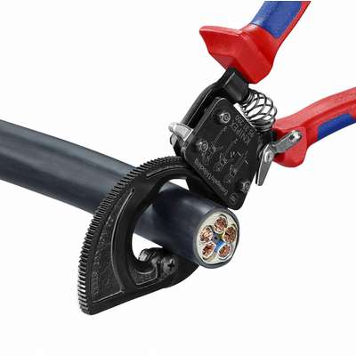 Knipex Ratchet Cable Cutter, Multi-Component, 10"Overall Length, Shear Cutting Action
