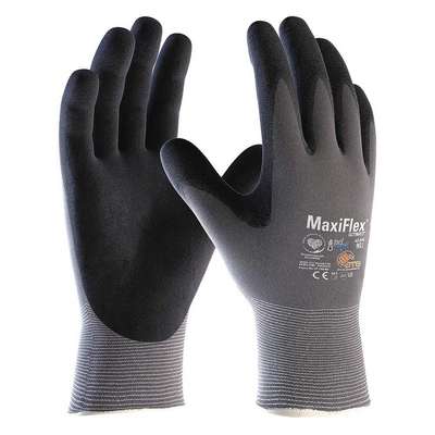 Coated Gloves, ANSI/ISEA Abrasion Level Not Rated, Brand and Series PIP MaxiFlex(R) Ultimate(TM) AD-APT(TM) 42-874, Gray/Black, FDA Compliant Yes, Glove Coating Coverage Palm, Glove Coating Finish Microfoam, Glove Coating Material Foam Nitrile, Glove Construction Seamless Knit, Glove Size XL, PK 12