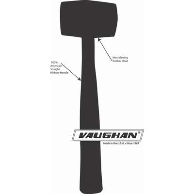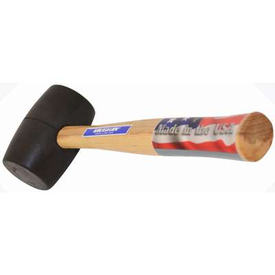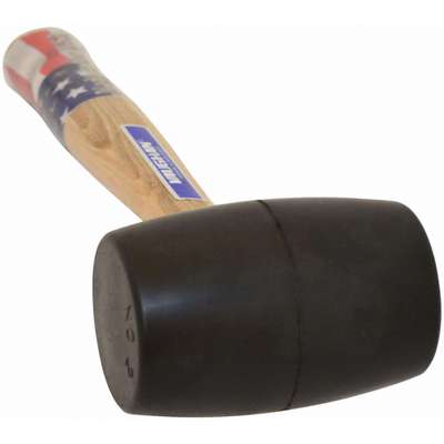 Vaughan Rubber Mallet: Wood Handle, 20 oz Head Wt, 2 1/4 in Dia, 4 in Head Lg, 11 in Overall Lg, Black