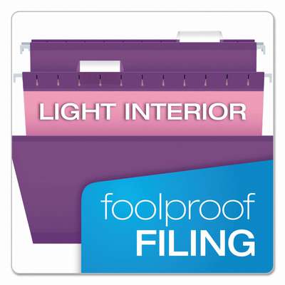 Hanging File Folders, Height 8 1/2 in, Width 11 in, Color Violet, Includes Tabs and Inserts, PK 25