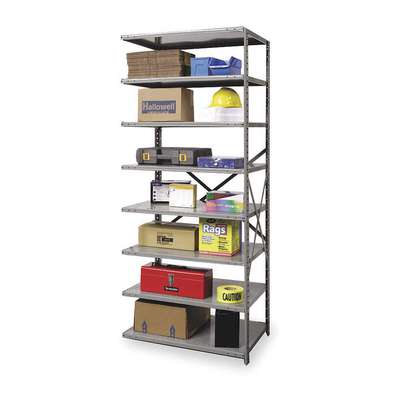 Metal Shelving: Add-On, Medium-Duty, 36 in x 18 in, 84 in Overall Ht, 8 Shelves