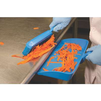 This is a dusting brush with a smooth, ergonomically designed handle. The medium strength bristles remove moist or medium sized particles, such as sugar, chocolate, pastry, vegetable peelings. It is also used as a dustpan brush on floors. Ideal for cleaning where hygiene and cross-contamination are concerns. Use it with other color-coded items for safety and easy identification.