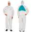 Hooded Disposable Coveralls: SMMMS, Light Duty, Serged Seam, White, 3M, L